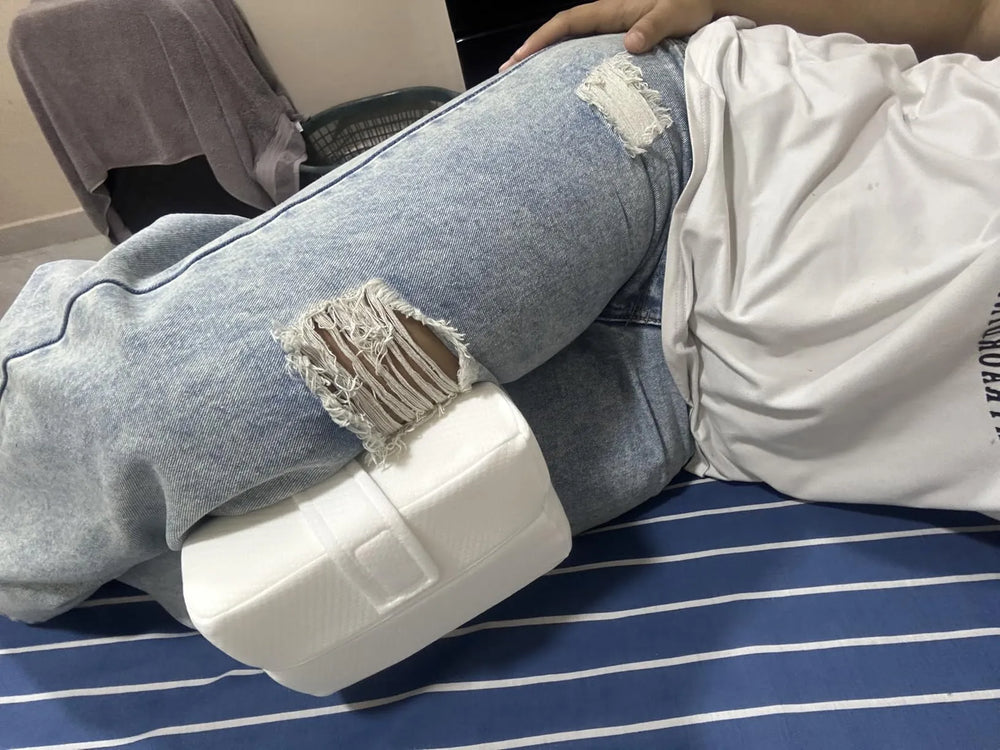 "The Knee Pillow for Side Sleepers with Adjustable Strap has made a big difference in my comfort and sleep quality. The memory foam is supportive yet soft, keeping my hips, knees, and spine aligned all night. The adjustable strap is a great feature—it holds the pillow in place even if I move around while sleeping. Highly recommend for anyone looking for extra support and restful sleep!"